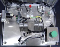 電気部品のROMに付けるリベットをかしめる装置です。2点のリベットを同時にかしめます。